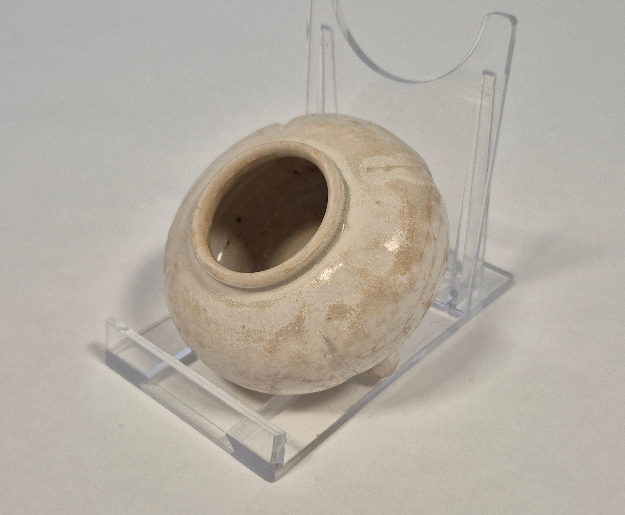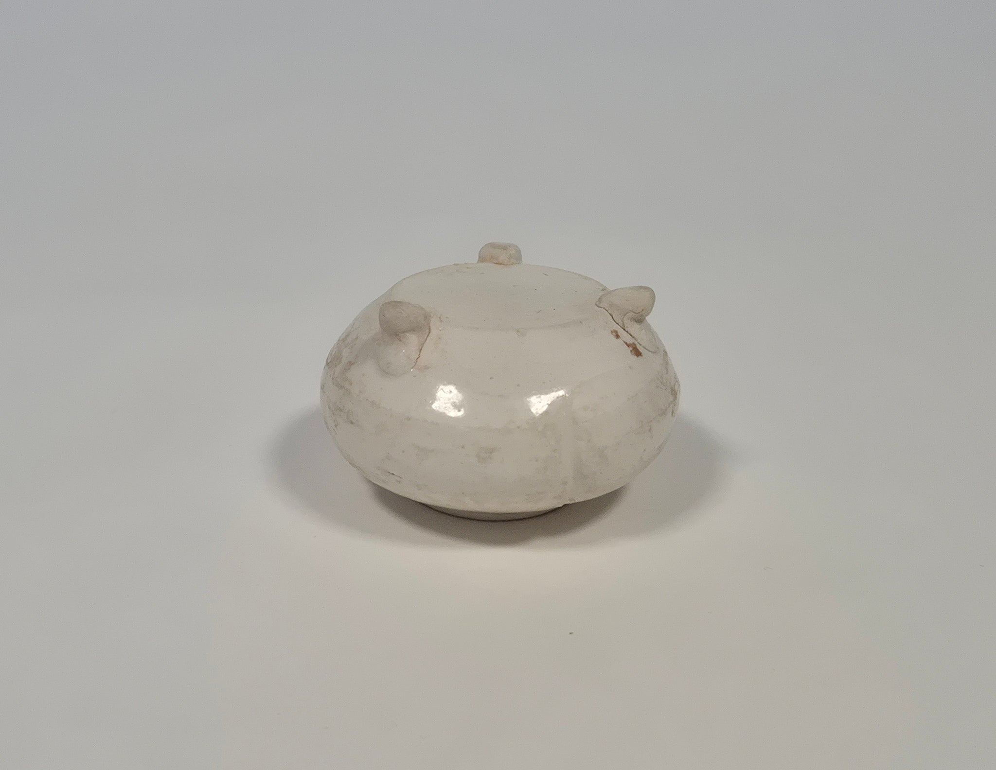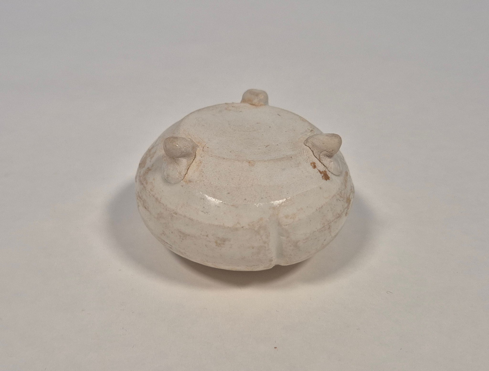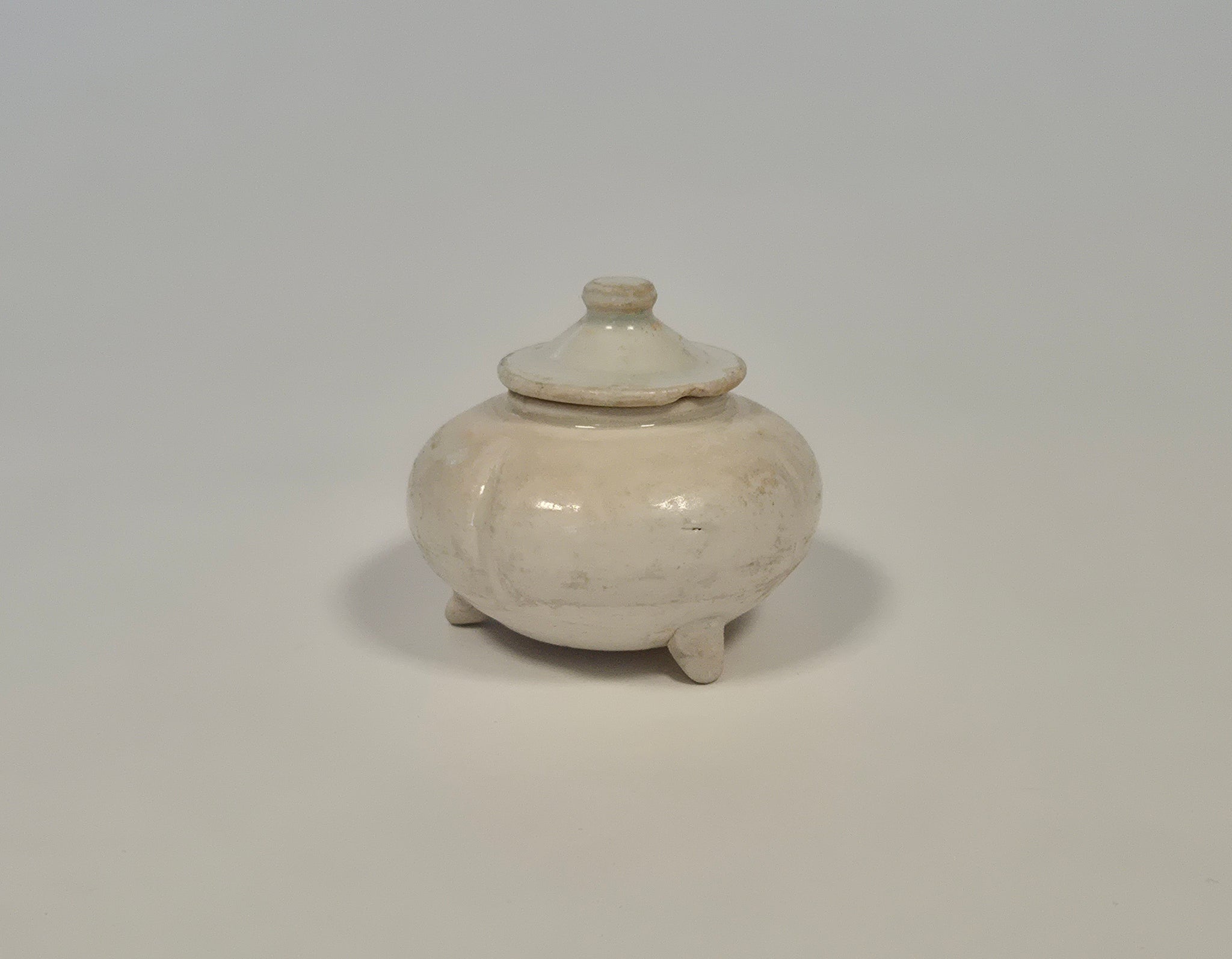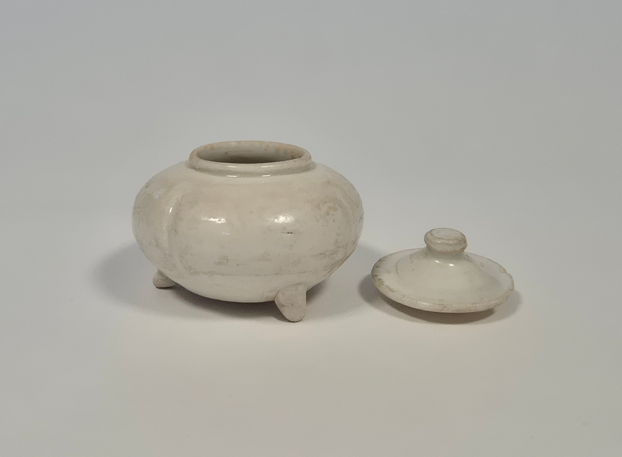 A white-glazed tripod water pot with cover – Tang Dynasty