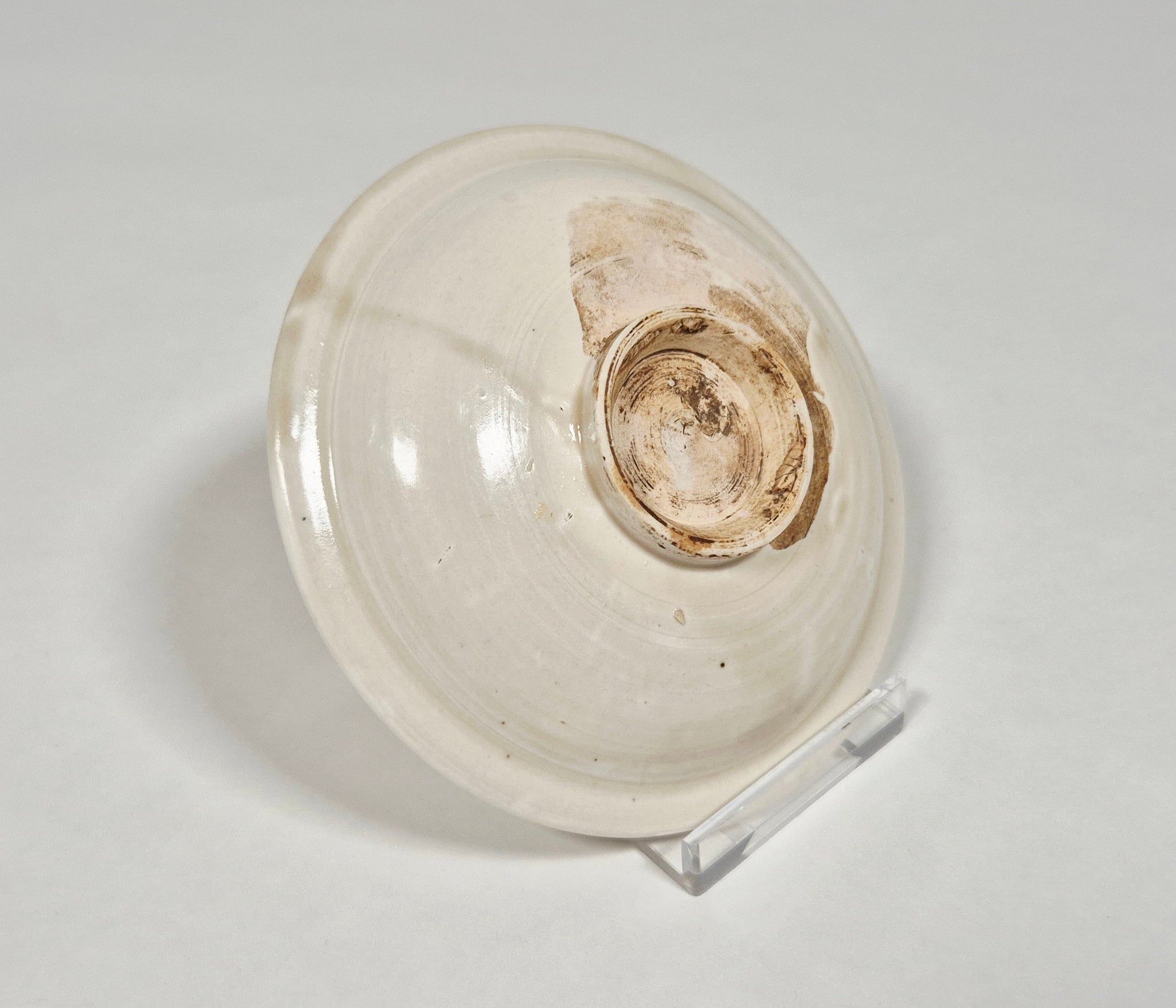 This dish was likely made at the Jiexiu or Houzhou kilns in Shanxi Province. Both kilns were renowned for producing fine quality white wares inspired by the celebrated Ding wares of the Northern Song dynasty (960-1127). Jiexiu kilns site is located at Hongshan Town in Jiexiu County in central Shanxi. They started to produce white porcelain in Northern Song dynasty. Houzhou kilns were located near the town of Chencun in southeastern part of the province, and started production in Jin dynasty. Both kilns produced high quality white wares, often small and thinly made. Common shapes include the waisted dish, stem-cup with ribbed foot, and dish with flattened rim.