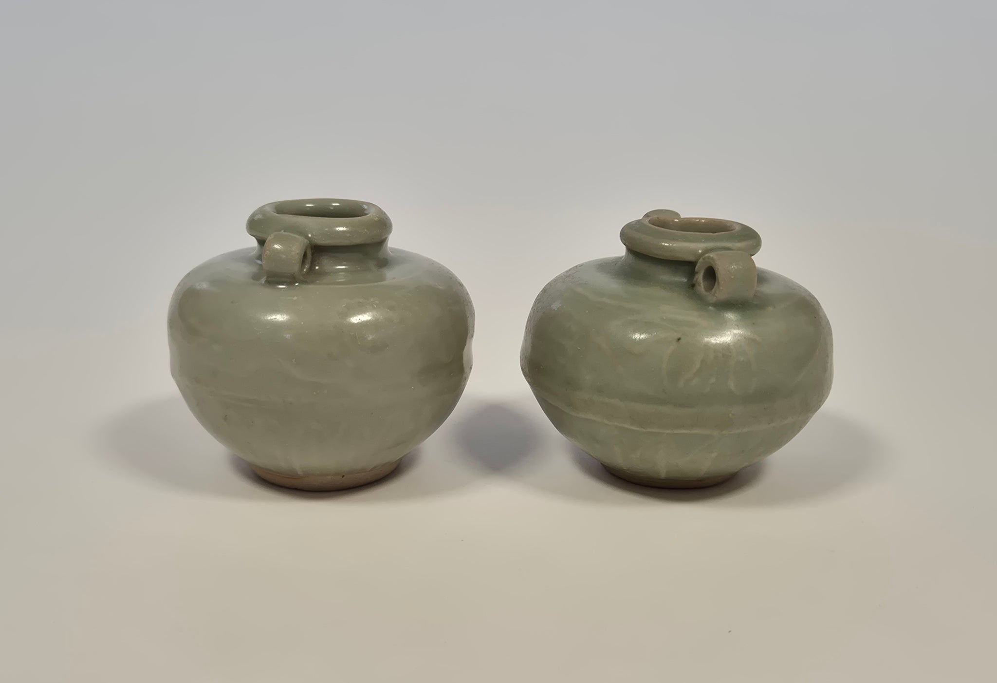 Two Longquan celadon jarlets with moulded decoration – Yuan Dynasty