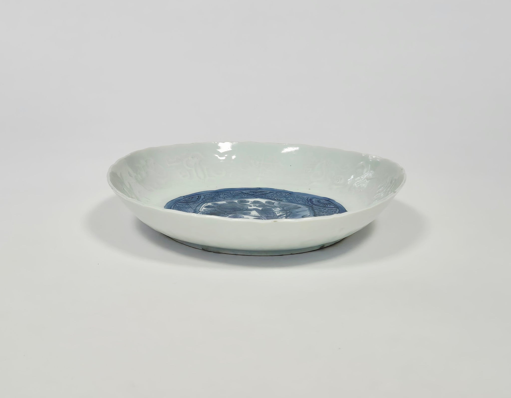 A blue and white moulded dish – Ming Dynasty